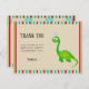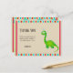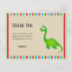 Este texto de cartão postal de agradecimento para festa de aniversário de dinossauro é totalmente personalizável.