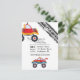 Convite de festa de aniversário de menino com tema de monster truck com esquema de cores preto e branco simplista personalizável para os detalhes do seu evento.