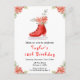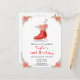 Este elegante e festivo convite de aniversário de aquarela apresenta uma bota vermelha de gelo e belas flores vermelhas florais de poinsettia. O texto combina o script manuscrito e as fontes sans serif para uma aparência na moda e moderna. Isto é perfeito para festas de aniversário de inverno e Natal.