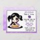 Convites de Aniversário de Festa de Pizza de Menina. Menina de anime roxa e preta com prato de pizza.