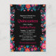 Eleve a sua celebração de Quinceañera com o nosso Cartão Postal de Aniversário de Fiesta Mexicana Preta com Flores para Quinceañera. Este cartão postal elegante apresenta um fundo preto elegante, proporcionando uma tela sofisticada para os padrões florais vibrantes em turquesa, laranja e rosa. A frente apresenta um design elegante e festivo, enquanto a parte de trás permite um toque personalizado com texto personalizável detalhando o seu evento. A fusão de estilo moderno e elementos tradicionais mexicanos torna este cartão postal uma escolha perfeita para quem procura uma maneira única e memorável de convidar os entes queridos para a celebração da Quinceañera. Personalize a parte de trás com detalhes do evento, tornando-o um souvenir elegante para os seus convidados.