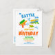 Convite de aniversário com padrão de armas de água e balões de água para festa de piscina de verão para crianças em cartão postal.
