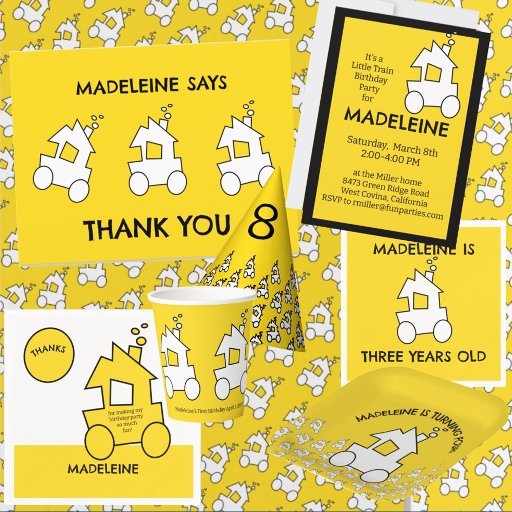 Envie trens de animação bonitos em um cartão postal para obrigado de seus convidados de festa de aniversário.