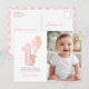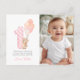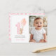 Urso Teddy Bear primeiro aniversário segurando balões cor-de-rosa cartão postal de agradecimento para convidado da festa de aniversário de 1ª menina.