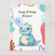 Cartão Postal Festa de aniversário feliz do menino dinossauro fo