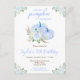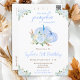 Este convite de festa de aniversário em aquarela fofo e caprichoso apresenta abóboras azuis pastel e arranjos florais lindos. O texto combina fontes manuscritas e sem serifa para uma aparência elegante e moderna. Isso é perfeito para uma festa de aniversário de outono.