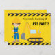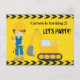 Convite de aniversário personalizado de veículo de construção legal para uma criança que ama veículos de construção em preto e amarelo. Convite de cartão postal infantil divertido para um menino que ama escavadeiras, bem como carros e caminhões. Personalize com as informações da festa do seu filho no verso.