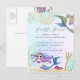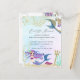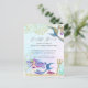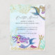 Convites de festa de aniversário de sereia com pintura em aquarela em tons de rosa e violeta com esquema de brilho dourado.