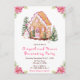 Esta elegante e festiva convite de festas decorativa de pães-de-gengiva apresenta uma casa de gengibre de aquarela e lindas flores rosa de poinsettia. O texto combina o script manuscrito e as fontes sans serif para uma aparência na moda e moderna. O boneco de neve, pinheiro decorado e coroa de férias adicionam um toque festivo. Isto é perfeito para festas de Natal.
