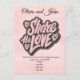 Convite de festa de noivado compartilhe o amor em formato de cartão postal. Texto totalmente editável.