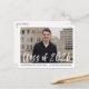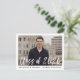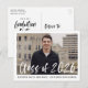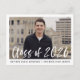 Convites de festa de formatura elegantes e modernos com a foto do formando em moldura branca e "Turma de 2026" em sobreposição de letra de pincel em branco. Personalize a frente adicionando o nome do formando e da escola em texto preto. O verso exibe o endereço de resposta e os detalhes da festa de formatura em texto preto.