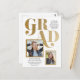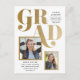 Um anúncio de graduação combinado e um convite com múltiplas aberturas fotográficas, tipografia ousada num esquema assimétrico moderno.