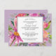 Flores silvestres cor-de-água rosa e púrpura em cartaz de convite à festa de formatura roxa. Personalize para seu segundo grau, faculdade ou festa universitária.