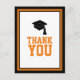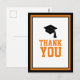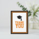 Diga obrigado com esta Festa de formatura Negra e Laranja Obrigado Cartão-postal. Ele apresenta 'Obrigado' em laranja e um boné formando preto cercado por uma borda negra e laranja. O verso é vazio para a sua mensagem pessoal.