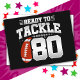 Este design de aniversário de futebol americano é perfeito para uma festa de aniversário de 80 anos com tema de futebol americano para celebrar os 80 anos de idade! Apresenta a citação de aniversário de 80 anos 'Pronto para Enfrentar 80' com gráfico de futebol americano. Perfeito para qualquer pessoa que ama futebol americano e está completando 80 anos!