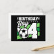 Este design de festa de aniversário de futebol é perfeito para uma festa de aniversário com tema de futebol para meninos de 4 anos de idade para celebrar seu 4º aniversário! Ótimo para crianças que amam jogar futebol, assistir futebol ou futuros jogadores de futebol! Apresenta uma bola de futebol em um gráfico de campo de futebol com o número 4 para o 4º aniversário de um menino.