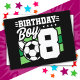 Este design de festa de aniversário de futebol é perfeito para uma festa de aniversário de tema de futebol de menino de 8 anos para celebrar seu 8º aniversário! Ótimo para crianças que amam jogar futebol, assistir futebol ou futuros jogadores de futebol! Apresenta uma bola de futebol em um gráfico de campo de futebol com o número 8 para o 8º aniversário de um menino.