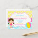 Festa de gala na piscina da garota morena cartão de agradecimento para presentear seus convidados como um lembrete da ocasião. Ideal para festas de verão. As palavras podem ser alteradas para atender às suas próprias necessidades.