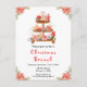 Este convite elegante e festivo para o almoço de festas apresenta uma banca de bolo com biscoitos de gengibre, macarões, doces, cacau quente e bule. Nos cantos estão lindas flores vermelhas da poinsettia. O texto combina o script manuscrito e as fontes sans serif para uma aparência na moda e moderna. Isto é perfeito para uma festa de café de Natal ou chá.