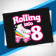 Este design de festa de patins é perfeito para uma festa de patinação sobre rodas ou tema de aniversário para uma criança de 8 anos. Se a menina ou menino que faz aniversário adora patinar, eles vão ADORAR este design de festa de patins! Características estilo retrô "Rolando para 8" citação de aniversário com gráfico de patins legal com arco-íris e estrelas que é divertido e único. Design de festa de patins divertido para um 8º aniversário!