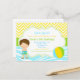 Convite para uma Festa na Piscina com Garoto de Cabelo Castanho. As palavras podem ser alteradas para atender às suas necessidades.