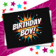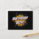 Este design de garoto de aniversário de herói de quadrinhos é perfeito para um tema de festa de aniversário de super-herói! Ótimo para meninos de todas as idades que amam super-heróis de quadrinhos ou vilões com superpoderes! Apresenta a citação 'Garoto de Aniversário!' de feliz aniversário em um tema de super-herói de quadrinhos que o garoto de aniversário super vai ADORAR!