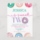 Este convite de aniversário temático de donut doce apresenta ilustrações de donuts em aquarela e tipografia moderna e fofa de "um doce" e "dois doces". O texto é editável nestes convites de festa de aniversário e cartões-postais econômicos também estão disponíveis! Este design é neutro em termos de gênero e totalmente personalizável. Encontre itens correspondentes na minha loja.