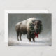 Celebrate the wild side of winter with this unique bison illustration. Standing in a snowy landscape, the majestic creature wears a festive wreath adorned with red berries and a bold red bow.