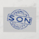 Uma ideia de presente de excelente do TeesForYourFamily.com! Este design bonitinho no estilo de selo torna-o oficial — este filho é Premium Quality! Feito em uma cor azul-tinta que foi aflita por um olhar de vintage, este design original é a perfeita ideia única de dotar pais de filhos e seus filhos de alta qualidade! Você pode personalizar totalmente este presente! Mova o carimbo, mude a cor ou o estilo de fundo, adicione o seu próprio texto ou imagens — faça dele o seu!