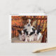 Cartão de animal mostrando filhotes de papillon bonitinhos com a mãe. O Papillon (da palavra francesa para borboleta), também chamado de Continental Toy Spaniel, é uma raça de cães do tipo espanhol. Um dos mais antigos spaniels do brinquedo, deriva seu nome de sua borboleta característica como o olhar do cabelo longo e franzido nos ouvidos. A cabeça pequena é ligeiramente arredondada entre as orelhas com uma paragem bem definida. O focinho é um pouco curto, fino caindo até o nariz. Os olhos escuros, médios, redondos têm minúsculas escuras, muitas vezes se estendendo na junção das pálpebras em direção aos ouvidos. Os ouvidos grandes podem ser erguidos ou caídos com pontas arredondadas. Os dentes encontram-se numa tesoura picada. A cauda longa é elevada, transportada sobre o corpo, e coberta de cabelo longo e fino. Às vezes, os parafusos são removidos. O casaco, longo, fino, solteiro tem um colar extra no peito, orelhas, costas das pernas e cauda. Casaco é branco com patches de qualquer cor. Máscara de cor diferente de cobrir brancos, ouvidos e olhos de trás para a frente.