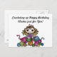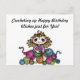 A fotografia de uma gata, bonita, de um clipe, sentada em bolas de fio com gancho de crochê na mão, com a mensagem "Crocheting up Happy Birthday Wish for You" está neste cartão-postal. Uma saudação de aniversário de excelente para enviar ao seu crocheter favorito!