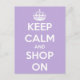 Um poster de motivação britânico WW2 vintage recriado em lavanda de algodão suave e branco para "Super Shoppers" em todos os lugares.