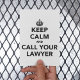 Fique calmo e chame seu advogado - bom conselho para a maioria das situações! No estilo do famoso Mantenha Calma e Carregue na poster.