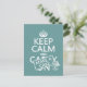 Aqui se lê "Manter Calmo e Fazer um Bolo", no estilo do clássico "manter calma poster". As palavras finais foram acrescentadas como se estivessem num autocolante ou num selo sobre o original. Há um bolo de grande aparência que fica ao lado das palavras. É uma design divertida e bonita, com senso de decadência. Perfeito para qualquer sala de chá ou padaria, e um presente adorável para quem ama bolo.