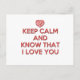 Cartão Postal Fique calmo e saiba que te amo
