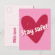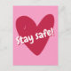 Cartão Postal Fique seguro! Grande Coração Rosa - Ânimo Corona