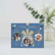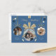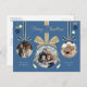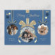 Espalhe a alegria de férias com este cartão-postal festivo com arcos desenhados à mão que coroam três das suas fotos favoritas em quadros circulares - criando a aparência de Enfeites de natal festivos. O elegante cartão postal de feriado azul e creme inclui 'Feliz Natal' em uma fonte de script manuscrita e seu nome de família personalizado; no verso você pode adicionar uma mensagem personalizada e um endereço de retorno.
