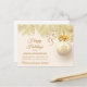 Mostre aos seus clientes e/ou clientes o quanto você aprecia seus negócios com este elegante cartão postal de agradecimento de Natal. A frente tem uma bela borda superior de ramos de pinheiro dourados com fita dourada, e uma esfera de árvore branca decorada com um floco de neve dourado e laço dourado. Sua mensagem está em 5 campos de texto dourado; faça-o dizer o que você quiser! Se você precisar adicionar texto extra para o verso, escolha personalizar.