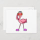 Cartão Postal Flamingo com Fone de Ouvido & Corações