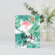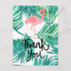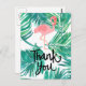 Cartão Postal flamingo de agradecimento com letras à mão em palm