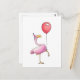 Com um flamingo rosa vestindo um chapéu de festa e segurando um balão vermelho, este design divertido é perfeito para quem ama animais, arte excêntrica e desejos de feliz aniversário alegres.