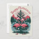 Design de Cartão-postal X-Mas bonito com dois flamingos desejando Feliz Natal.