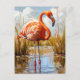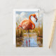 Uma ilustração digital de uma pintura a óleo de um flamingo na natureza andando na água.