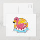 Cartão Postal Flamingo nadando com bóia salva-vidas