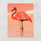 Um flamingo cor-de-rosa na água por um pôr do sol colorido