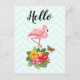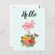 Cartão Postal Flamingo rosa e Rico de Hibiscus Tropical Alô
