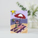 Cartão Postal Flamingo Rosa Engraçado na Praia