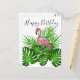 Cartão Postal Flamingo Rosa, selva tropical feliz aniversário