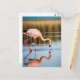 Cartão Postal Flamingo Rosa Vendo Sua Reflexão na Água