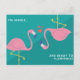 Cartão Postal Flamingo Verde Azul Engraçado